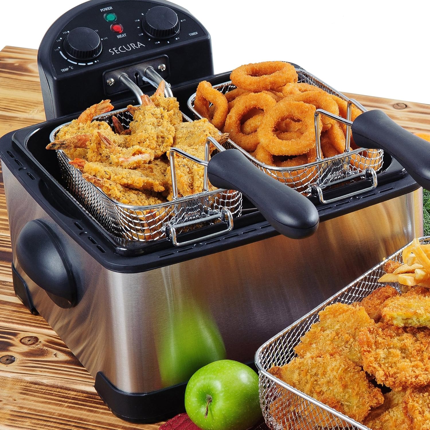 Secura 4.2L/17-Cup 1700-Watt Stainless-Steel Triple-Basket Electric Deep Fryer with Timer