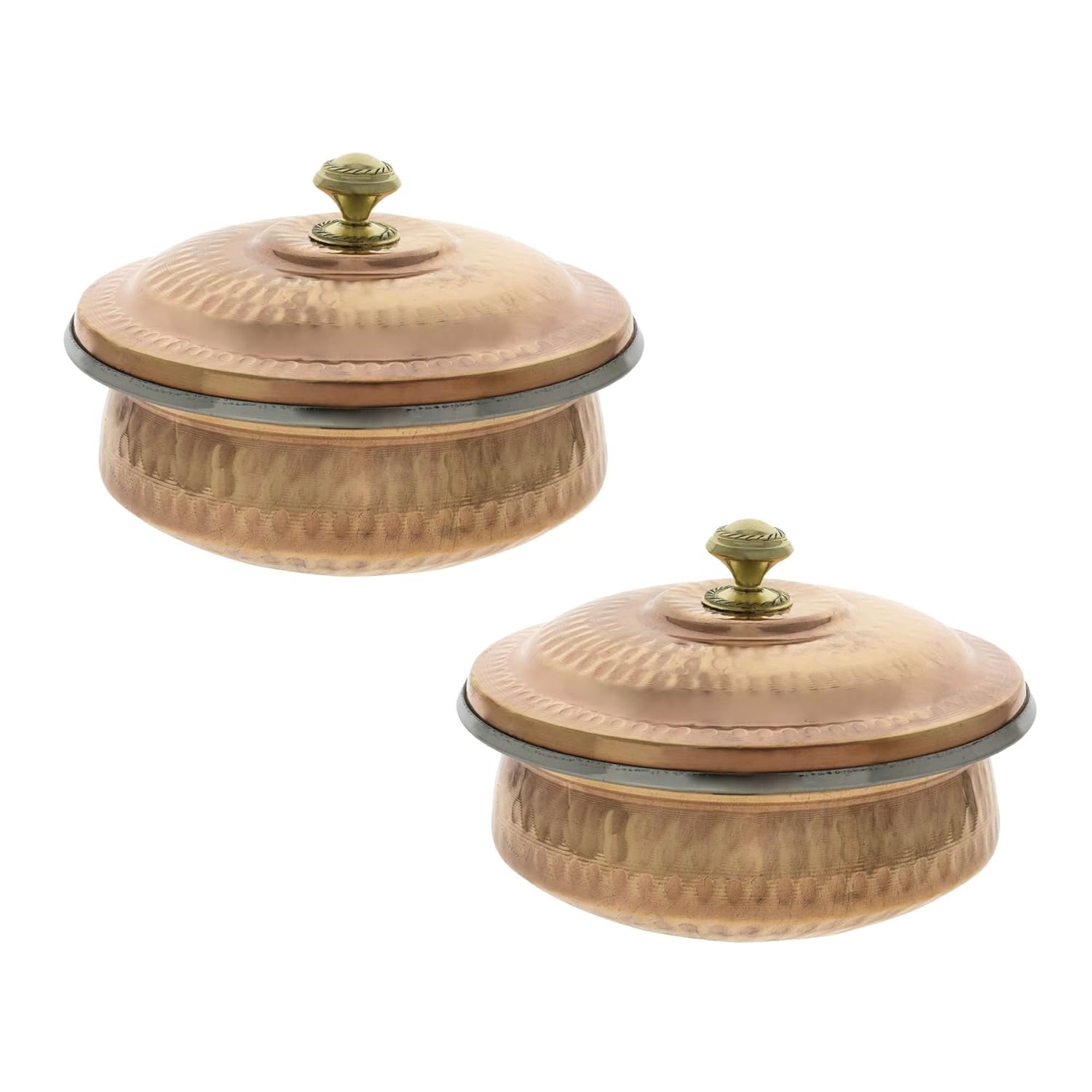 Dinnerware Indian Set of 2 Serving Bowl Copper Tureen with Lid 700 Ml