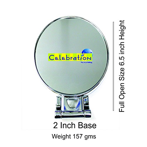 This fashion cosmetic table top mirror is the model tool for flawless makeup application. It connects to a well made base The Double Side surface features three x magnification for tweezing and other brushing tasks requiring a close-up view. The sleek Silver finish gives this mirror a classic latest look. Perfect for the bedroom or bathroom it also makes a great birthday homewarming or flurry Gift.