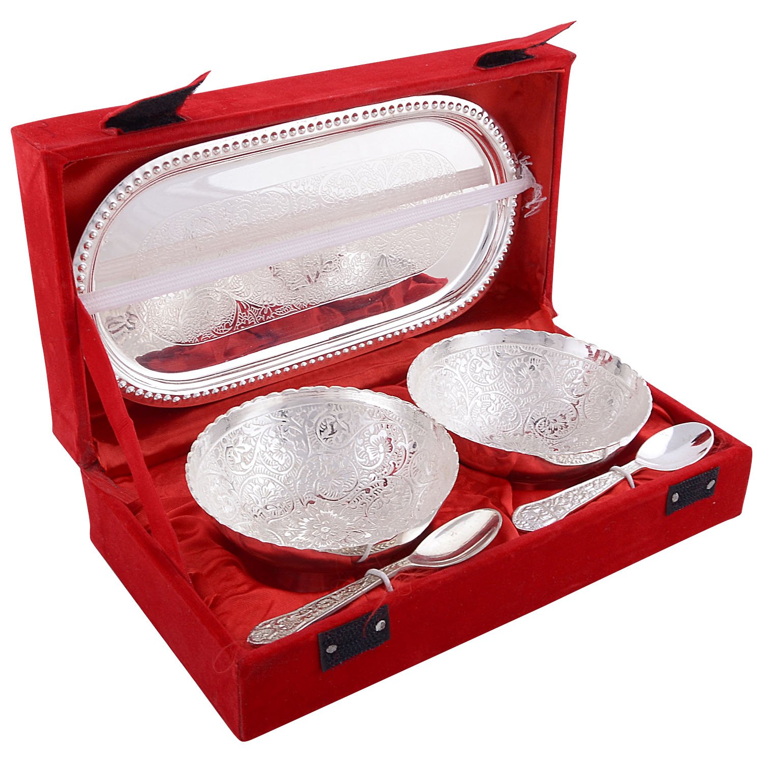 Rajasthan Emporium and Handicrafts German Silver Bowl, Spoon and Tray Gift set