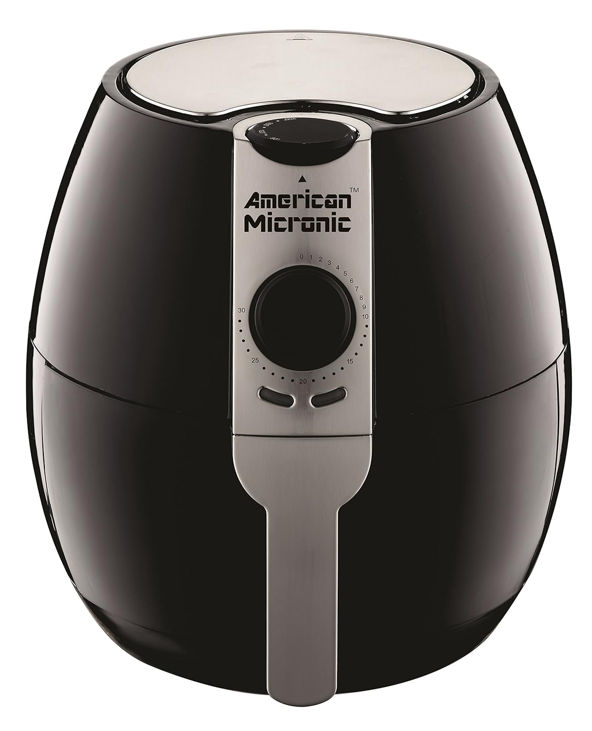 •The Healthy Way to Fry, Bake, Grill, or Roast your Favorite Foods. •The AMERICAN MICRONIC Airfryer does more than just fry. It can also grill, roast, and even bake your food. • Create everything from delicious cakes to tasty fried chicken with the Airfryer. • The AMERICAN MICRONIC Airfryer makes it possible to enjoy healthier versions of your favorite foods by frying them with a tablespoon or less of oil and draining excess fat during cooking. • TurboTunnel Fresh Air technology circulates air around the entire unit, heating up to 200C/ 392F degrees to ensure all food is cooked evenly throughout. • Food becomes crispy on the outside and tender on the inside with little to no oil. • In addition to its TurboTunnel Air technology, the fryer's unique design on the bottom helps facilitate air circulation for evenly distributed heat, so your food cooks thoroughly and quickly without the need for oil. • Control the Time and Temperature This fryer includes two integrated dials; one of them sets a timer for up to 30 minutes, and the other sets the temperature up to 200C/392F degrees. • Customize the settings to cook your food exactly as you want. Combines Efficiency with Safety When the timer hits zero, the fryer shuts off automatically to prevent your food from overcooking, and a "ready" sound indicator alerts you when cooking is complete. • The fryer's handgrips stay cool-to-the-touch, and its non-slip feet help keep it in place as it cooks Tasty and Versatile • AMERICAN MICRONIC Airfryer • Fries, bakes, grills and roasts food using a tablespoon or less of oil • Set the cooking time and temperature • Shuts off automatically and alerts you when food is ready • Dishwasher safe for easy cleaning