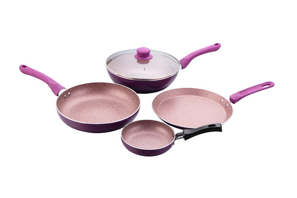 - Designer pans with health-friendly 5-layer non-stick coating